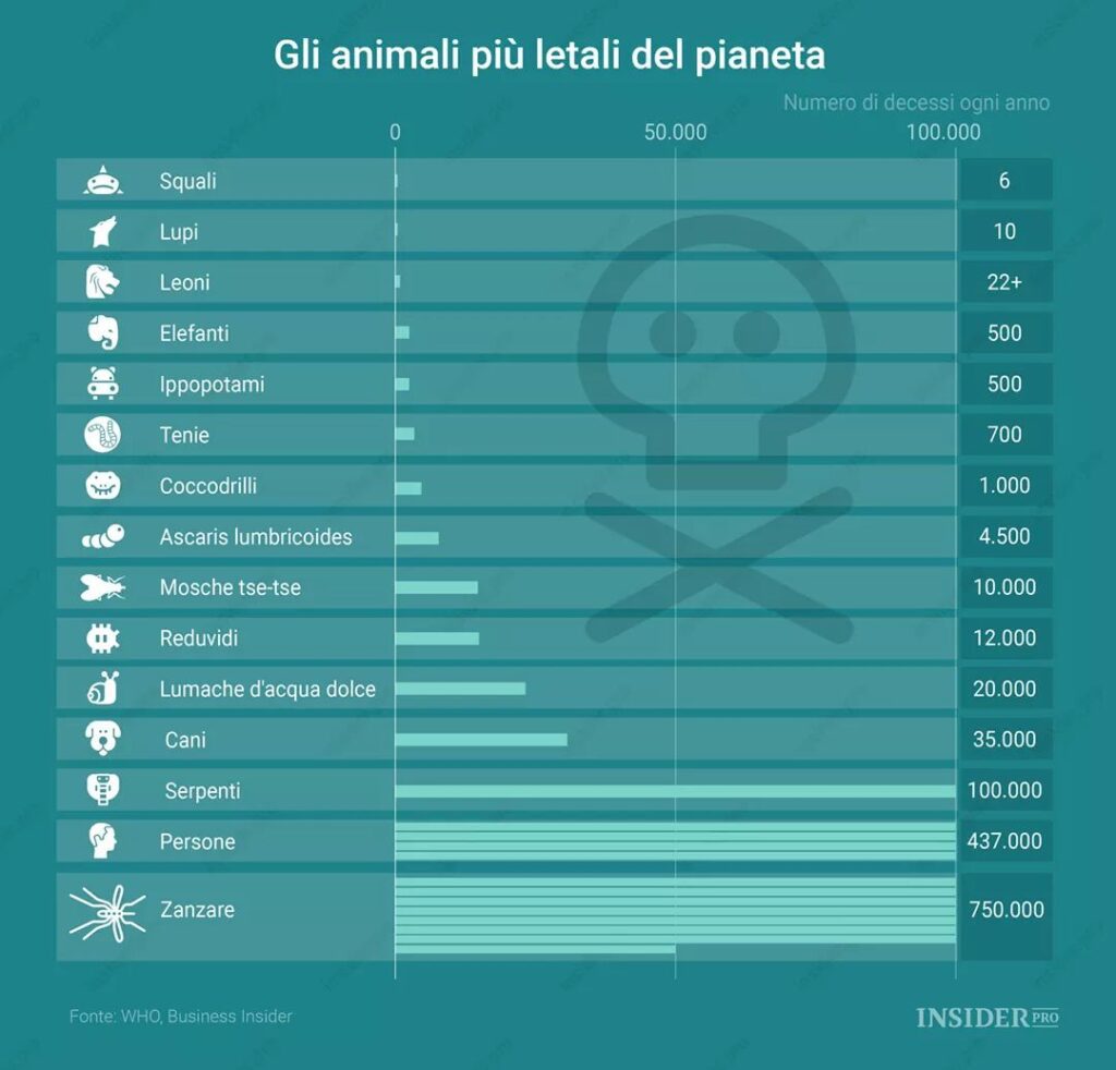 C’è una classifica che mette in risalto quali siano gli animali più letali del pianeta.
