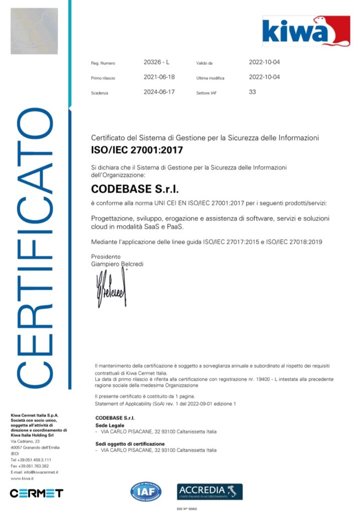Perchè Ongaro Disinfestazioni utilizza una piattaforma gestionale prodotta da un azienda certificata UNI EN ISO 27001, ISO/IEC 27017 e ISO/IEC 27018