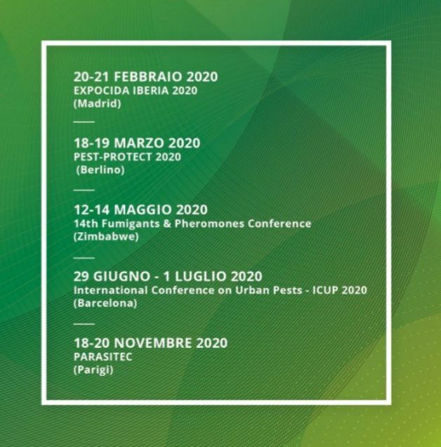 9* 12 gennaio 2020 Il programma delle Fiere e Conferenze sulla Disinfestazione per il 2020, a livello internazionale, parte a febbraio in Spagna, precisamente a Madrid, per poi continuare nel mese di marzo a Berlino. La terza data cade a maggio e vede come location lo Zimbabwe. Tra giugno e luglio ritorna nella penisola iberica, […]