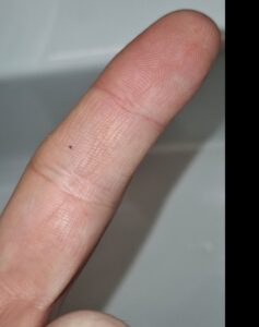 L’immagine ritrae la presenza di acari, forse Dermatophagoies spp., Glycyphagus spp. o Lepidoglyphus spp.