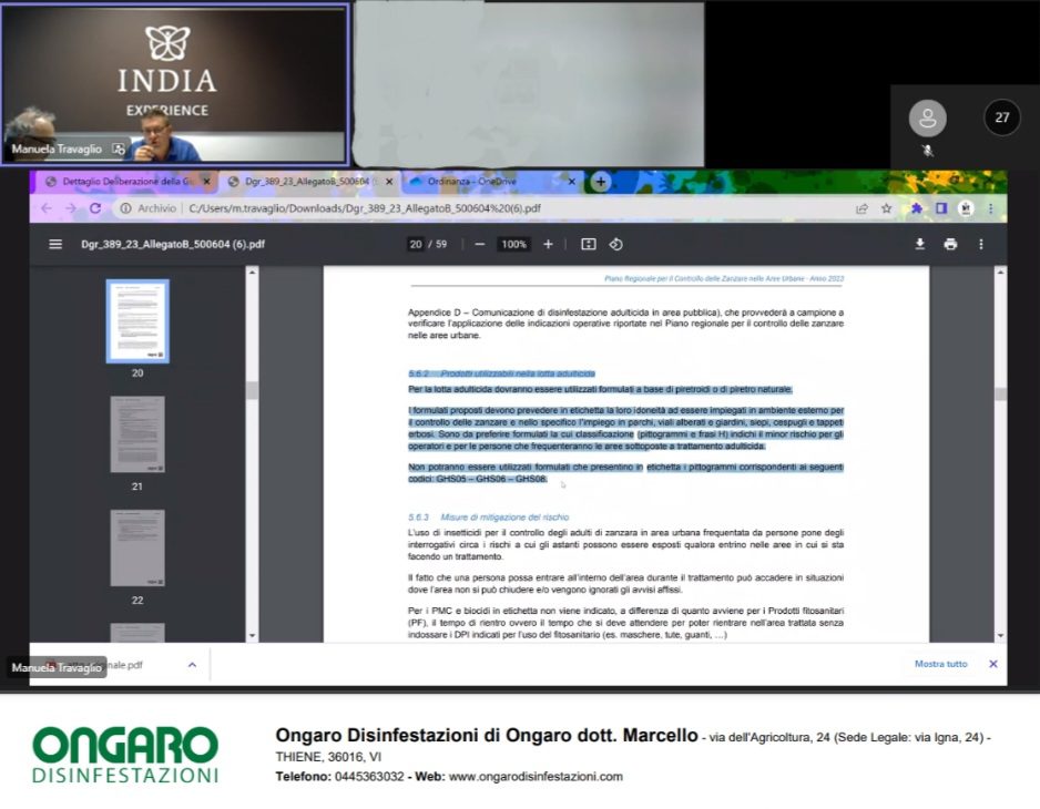 La conferenza on line tenuta ieri per disinfestatori professionisti dal Dott. Simone Martini  ha avuto come tema gli approfondimenti circa la deliberazione della Giunta Regionale Veneta.