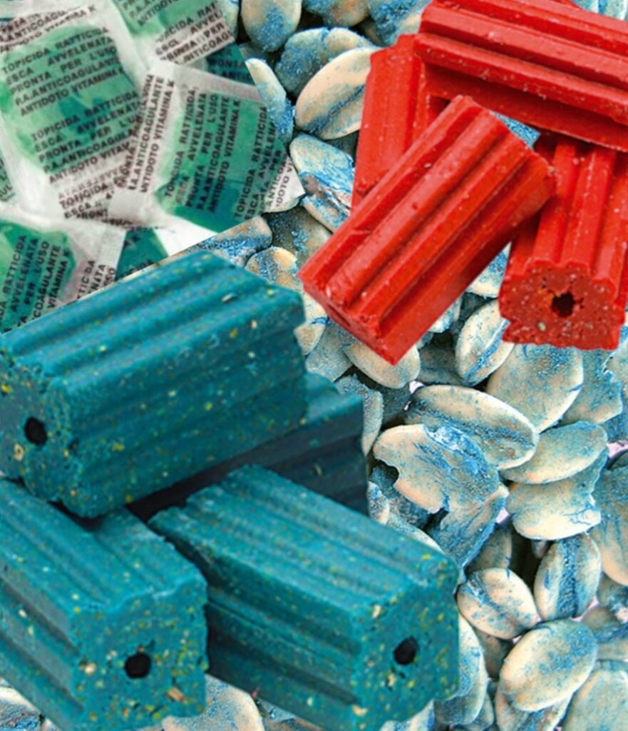Utilizziamo, di questi, nuovi tipi di blocchi paraffinati che non presentano nessuna fase di rischio e contengono un agente coesivo insapore che li rendono molto resistenti a temperature estreme, che hanno una maggiore appetibilità e sono autorizzati per i vari usi dai nostri Tecnici.