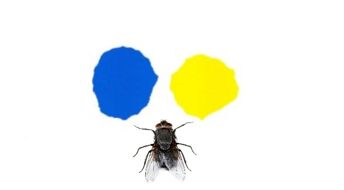 Un’analisi circa i tipi di fotorecettori dell’occhio dell’insetto ha dimostrato che il blu riesce a dare input positivi alle mosche facendo credere loro che esso corrisponda ad uno spazio sicuro dove, inoltre, possono anche trovare cibo.