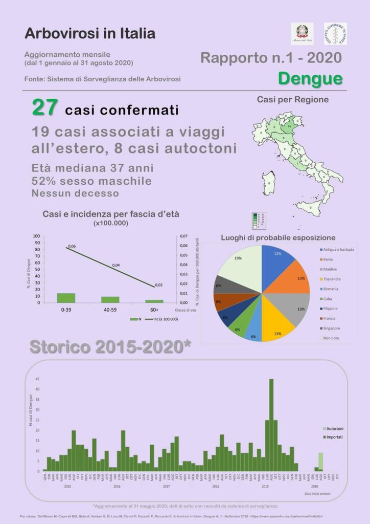 27 casi di Dengue (19 associati a viaggi all’estero, 8 autoctoni e nessun decesso);
