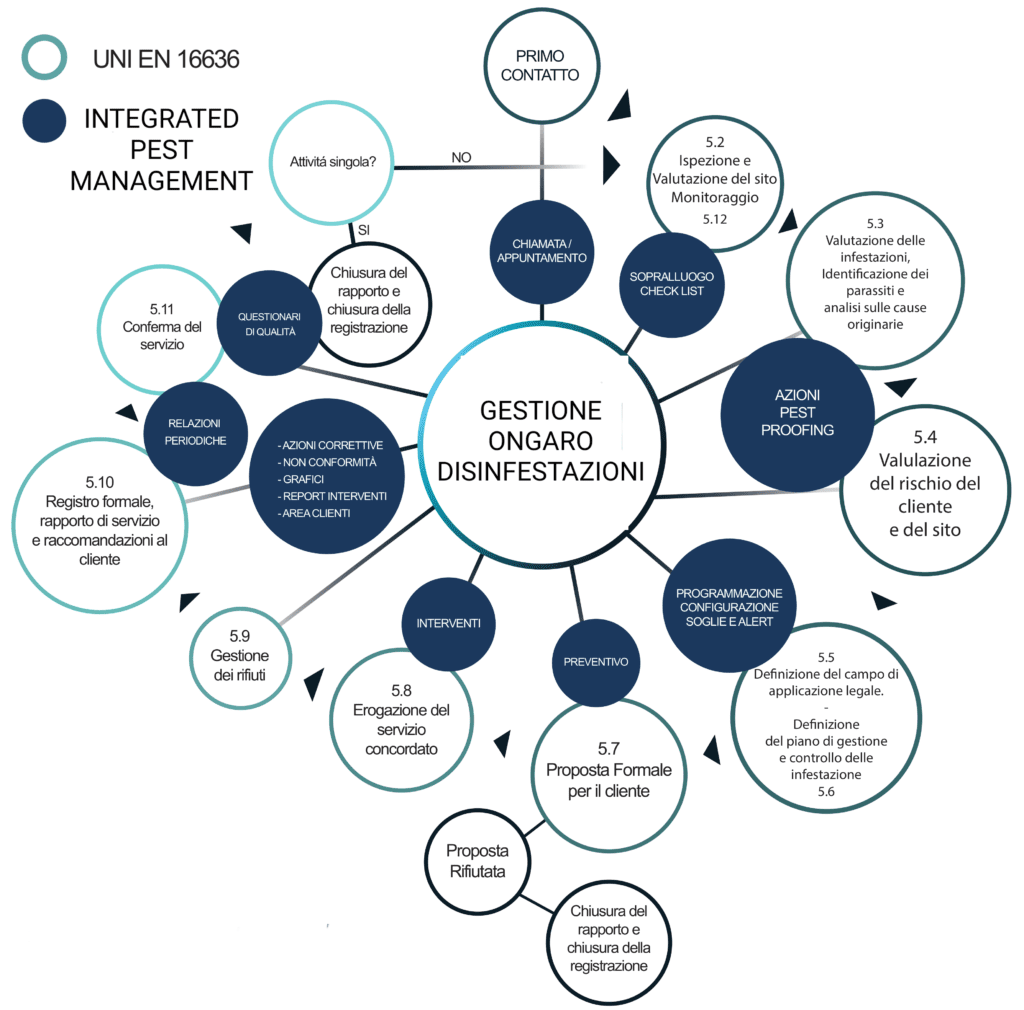Il Sistema di Controllo Qualità, integrato con i moduli dedicati al primo contatto e al sopralluogo, messi a disposizione dal gestionale utilizzato da Ongaro Disinfestazioni, è in grado di fornire un supporto specifico nella Valutazione del Rischio e nella Gestionedei Servizi Professionali, rispettando i requisiti previsti dagli Standard Normativi in vigore.